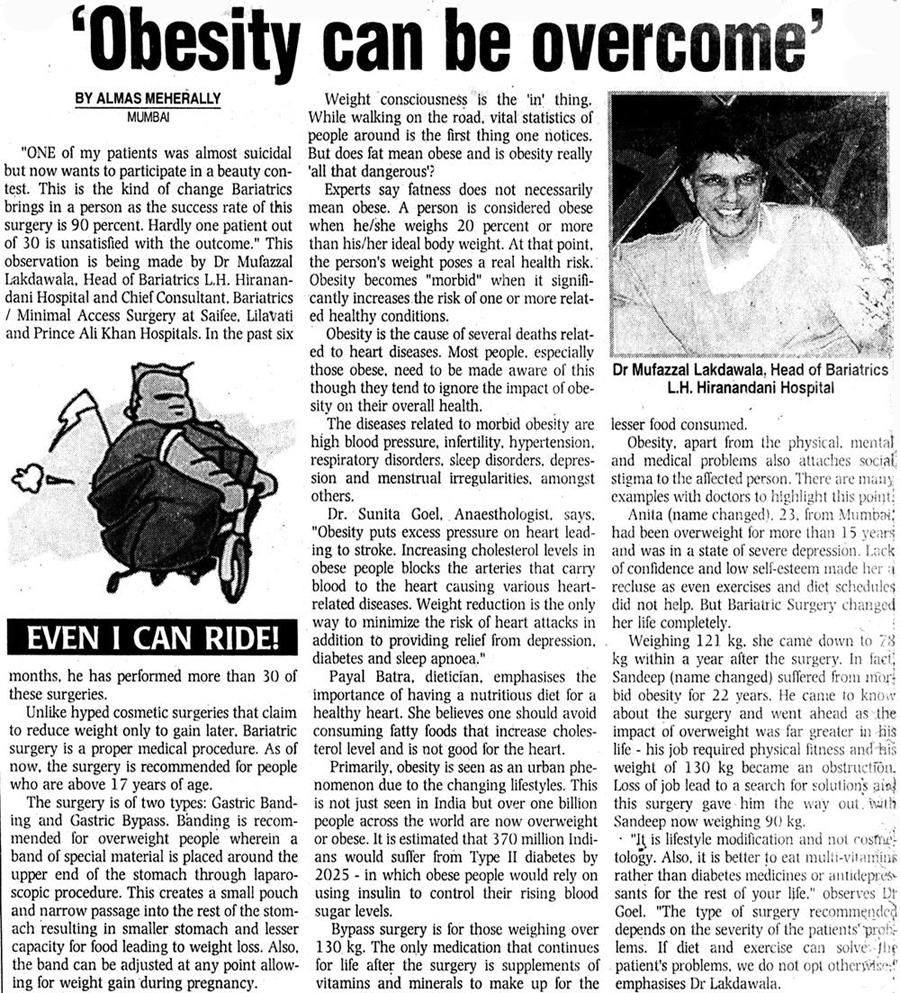 Free Press Journal - 12th October 2005 - Obesity can be overcome