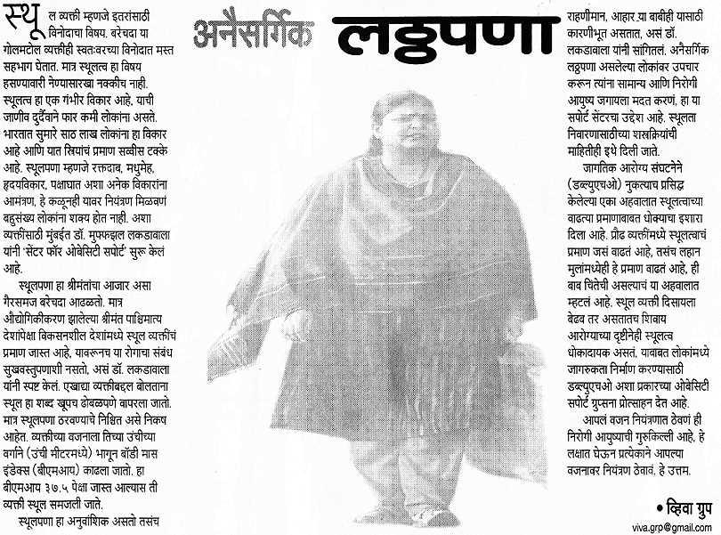 Loksatta (Regional) - 29th August 2005 - Un Natural fatness